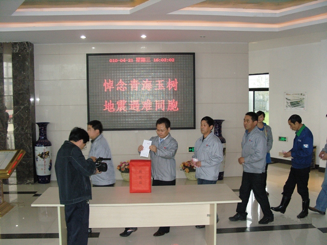 2010年4月14日青海玉树发生里氏7.1级地震,灾区的信息牵动着公司每个员工的心,公司员工陆续通过各种方式向地震灾区表达自己的一份心意。4月21日举国哀悼,下午4:00,公司组织员工对青海玉树的同胞们进行捐款,捐款前公司员工对地震中的遇难者进行默哀。共有326人参与本次活动,所得善款共计15885元,善款将通过铜陵市红十字会送达灾区。