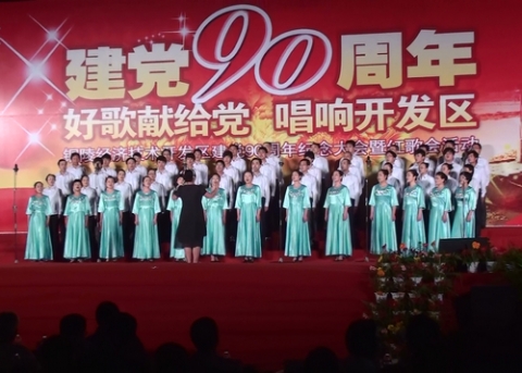 6月2日晚上的翠湖广场,灯火璀璨,微风徐徐。铜陵经济技术开发区举办的“好歌献给党 唱响开发区”喜迎建党90周年纪念大会暨红歌会在这里隆重举行。 天奇蓝天与铜冠机械组成的联合代表队参加了活动,以歌曲《歌唱祖国》和《团结就是力量》抒发了企业员工对党的深情厚爱和对铜陵经济技术开发区晋升国家级开发区的喜悦心情。