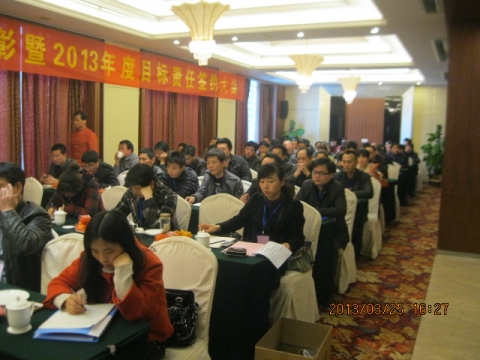 2013年3月25日下午2:00,2012年天奇蓝天先进表彰暨2013年目标责任签约大会在逸顿国际大酒店召开。久违的阳光在这天格外灿烂,带来一份好彩头,给人希望和信心。 公司董事长汪国春、总经理钱立华、副总经理周世昶等高层领导以及公司各部门负责人、员工代表80余人参加了此次会议。公司副总经理袁孝根先生主持会议。 公司总经理钱立华就2012与2011两年各项经营数据进行对比,及各部门2012年的考核指标完成情况,指出过去一年存在问题与不足,并公开2013年天奇蓝天与股份公司核定的各项指标数据,部署2013年的工作安排。为2013年指明工作任务和努力方向。副总经理袁孝根、周世昶、总经理助理姚远,安装公司总经理施乐勤,股份公司审计部长胡道义分别就分管部门对2012年度的挖潜增效、工作态度、企业管理等方面作发言。 荣获股份公司企业劳模的生产部周理、技术部吴光强、财务部杨丽娟在会上作精彩的经验交流发言。 会上宣读了股份公司的表彰决定,表彰了公司里在2012年工作中作出优秀成绩和贡献的13个优秀团队和62名企业之星,并对11项专利获得者给予了奖励。激励大家继续务实奋进,为企业做出贡献。 总经理钱立华宣读了2013年天奇蓝天任职通知,并与各部门签定了2013年的目标责任状。 股份公司副总经理、天奇蓝天董事长汪国春在会上作重要讲话,就新型产业报废汽车精细拆解项目做详细介绍,描绘愿景梦想,启发员工为梦想转变思路,为梦想启航。有效利用工作时间,逐步建立和谐轻松的工作状态,为大家日后的工作注入活力。 最后,会议在热烈的掌声中圆满结束。