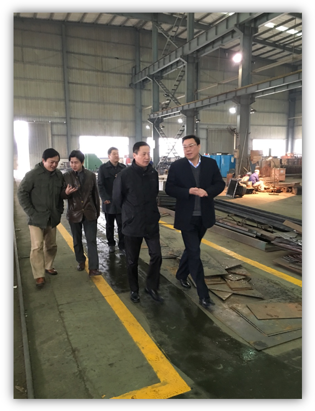 二O一六年二月十八日,铜陵市经信委陈主任一行来我公司调研走访,关心圈区大型企业年后开工情况;我公司钱总、施总陪同陈主任一行参观我公司,钱总经理向陈主任介绍企业年后发展规划,现场工作情况。