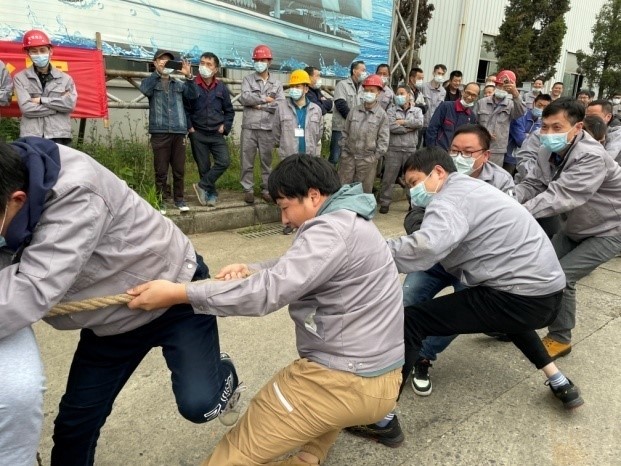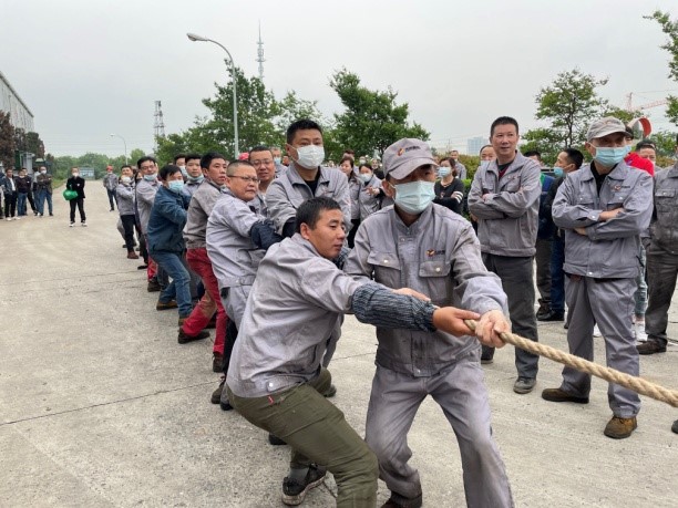 为丰富全体职工的精神文化生活,增强集团公司凝聚力,公司于 2022年4月30日举办庆“五一〞拔河比赛。每支代表队都显示出最强的比赛阵容,齐心协力,勇争第一。 当比赛的哨声响起,队员们口中一起高呼着“一二!一二”,双手紧握长绳,憋足了劲拼命往后拉,公司领导也在队伍旁边助阵加油,未参赛的员工自发组成啦啦队为比赛队员呐喊加油,号子声、呐喊声,此起彼伏,飘荡在上空。