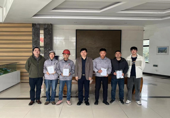 3月27日上午,公司总经理张启明对2023年受股份公司表彰的“优秀员工”高铭豪、姚杰及“岗位标兵”谷昆明、纪琴四名同志颁发荣誉证书和奖金,并与他们进行合影留念。