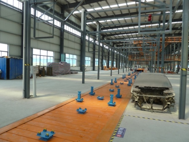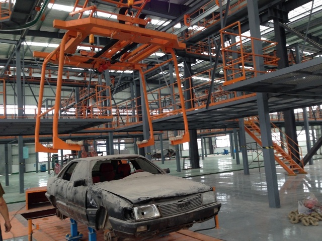 由公司自主研发设计、制造和安装的报废汽车拆解线是国家高技术研究发展计划(863计划)课题任务。报废汽车拆解线内容主要包括环保预处理线、油液抽取空中线、发动机拆取空中线、地面拆解板链线以及典型零部件分拆线和其他拆解设备。有效提高拆解效率,真正实现报废汽车零部件深度精细拆解,以带动再生资源回收利用产业的整体技术水平的提高和企业的升级转型。